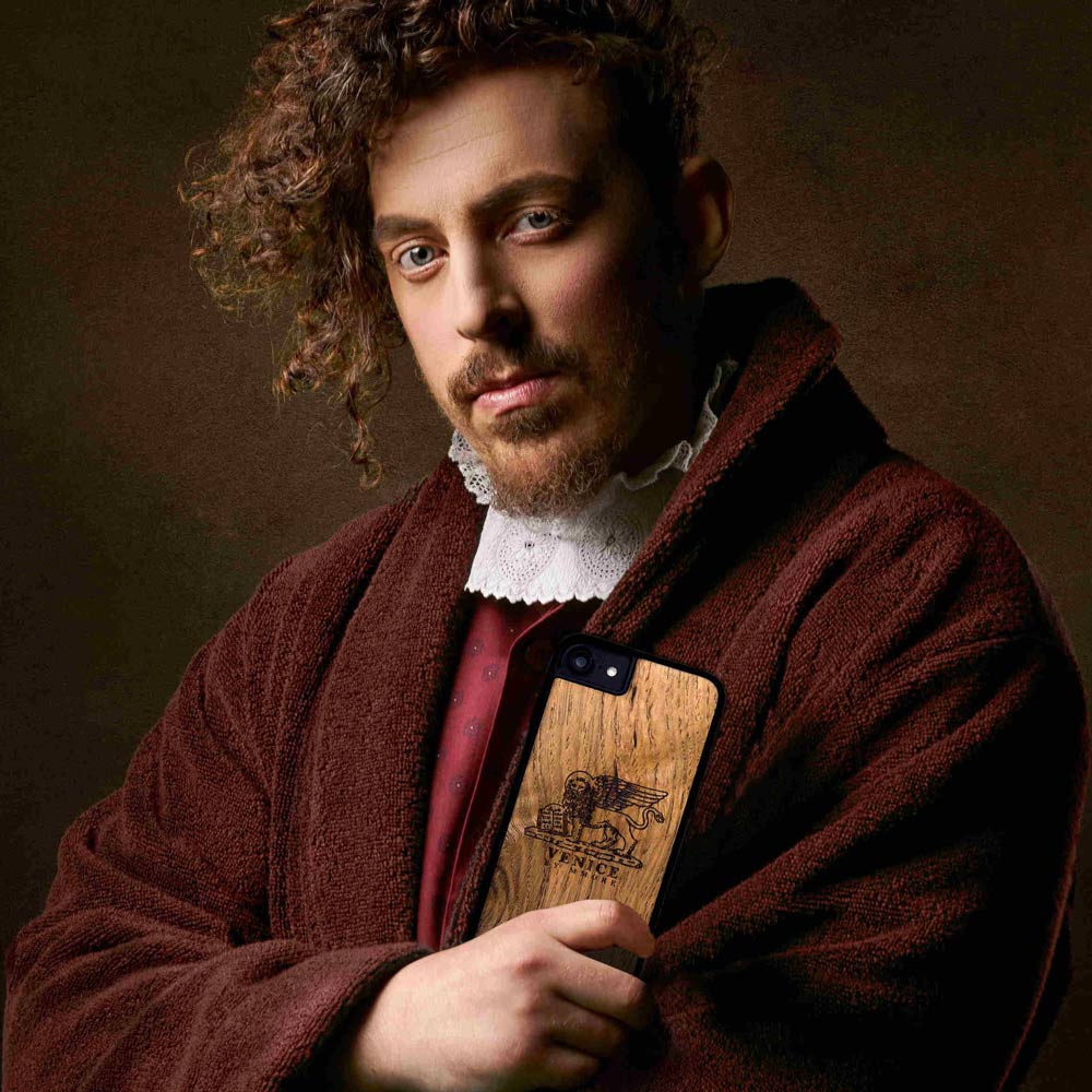 Tammipuusta valmistettu puhelinkotelo Venice The Lion of St. Marco. Venetsia puhelinkotelo on komea puinen kännykkäkotelo johon on laserkaiverrettu Pyhän Markuksen leijona, mikä on Venetsian kaupungin ikoninen symboli ja Venetsia teksti (Venice by MMore). Tammesta valmistettu puhelinkotelo on öljytty, värjätty ja viimeistelty käsin Sloveniassa Ljubljanassa.